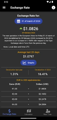Ez az alkalmazás segít naprakész maradni a valutaárfolyamokkal kapcsolatban. Könnyedén ellenőrizheti a referencia árfolyamokat, és használhatja a beépített, praktikus számológépet. Végezzen gyors és pontos átváltásokat, mindezt egyetlen, felhasználóbarát felületen. Tökéletes eszköz utazáshoz vagy pénzügyi tervezéshez.