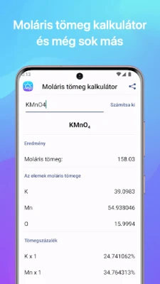 A gyakorlatiasság jegyében a moláris tömeg kalkulátor precízen meghatározza a vegyületek moláris tömegét és az elemek százalékos arányát, mindössze egy helyes kémiai vegyület megadásával. Emellett számos további hasznos táblázat és lista is rendelkezésre áll, mint például a saverősség táblázat, a szerves anyagok molekulatömegének adatai, a kémiai elemek képei, valamint a savak, anionok és sók átfogó jegyzéke. Az offline hozzáférés garantálja, hogy a fontos információk mindig elérhetőek legyenek, függetlenül attól, hogy hol tartózkodik. A Kémia alkalmazás sötét mód támogatásával pedig bármilyen fényviszonyok között kényelmesen használható, így a kémia tanulmányozása sosem volt még ilyen egyszerű és hatékony.