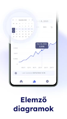 A valutaárfolyamok dinamikájának megértése kulcsfontosságú, ezért a Pénzkalkulátor átfogó történeti grafikonokat is kínál. Tekintse át a népszerű pénznemek múltbeli mozgását előre beállított vagy egyénileg meghatározott időintervallumokban, és szerezzen értékes betekintést a trendekbe! Annak érdekében, hogy soha ne maradjon le a legfontosabb változásokról, az alkalmazás személyre szabható push értesítésekkel figyelmezteti a frissítésekre, melyeket könnyedén szabályozhat a beállításokban. Ráadásul a testreszabható árfolyam funkcióval saját preferenciái szerint rendezheti a valutalistát, a legfontosabb pénznemeket mindig kéznél tartva.